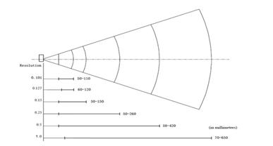 PCS 0.9 Code 3970 - / 2.76 - ( / 39 mil),50 - / 1.97 - ( / 20 mil),50 - / 1.97 - ( / 10 mil),50 - / 1.97 - ( / 6 mil),60- / 2.36 - ( / 5 mil)50- / 1.97 - (   / 4 mil)景深